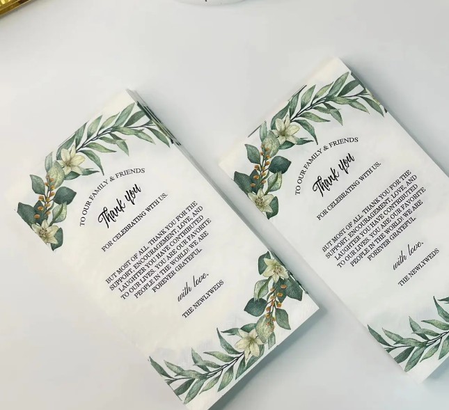 Parti baskılı kağıt peçetelerin etkinliğini en üst düzeye çıkarmak için yüksek kaliteli bir üretici seçmek çok önemlidir. Bu yalnızca baskının netliğini ve renk doğruluğunu değil aynı zamanda kağıdın malzemesini, hissini ve güvenliğini de etkiler.